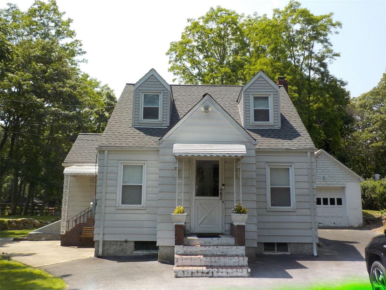 A charming Cape-Style home nestled on a private one-acre lot with a park-like setting.It features an oversized driveway set back from the road with a detached garage, full heated basement with outside entrance, and an oak eat-n- kitchen.Recent updates include a new bathroom,200-amp electrical system, washer and dryer, oil tank, a new roof. Also has a peerless heating system.Located in the Hauppauge School District with very low taxes.This home offers access to the LIRR and major parkways & highways + shopping. It's in mint condition and ready for its next owner.