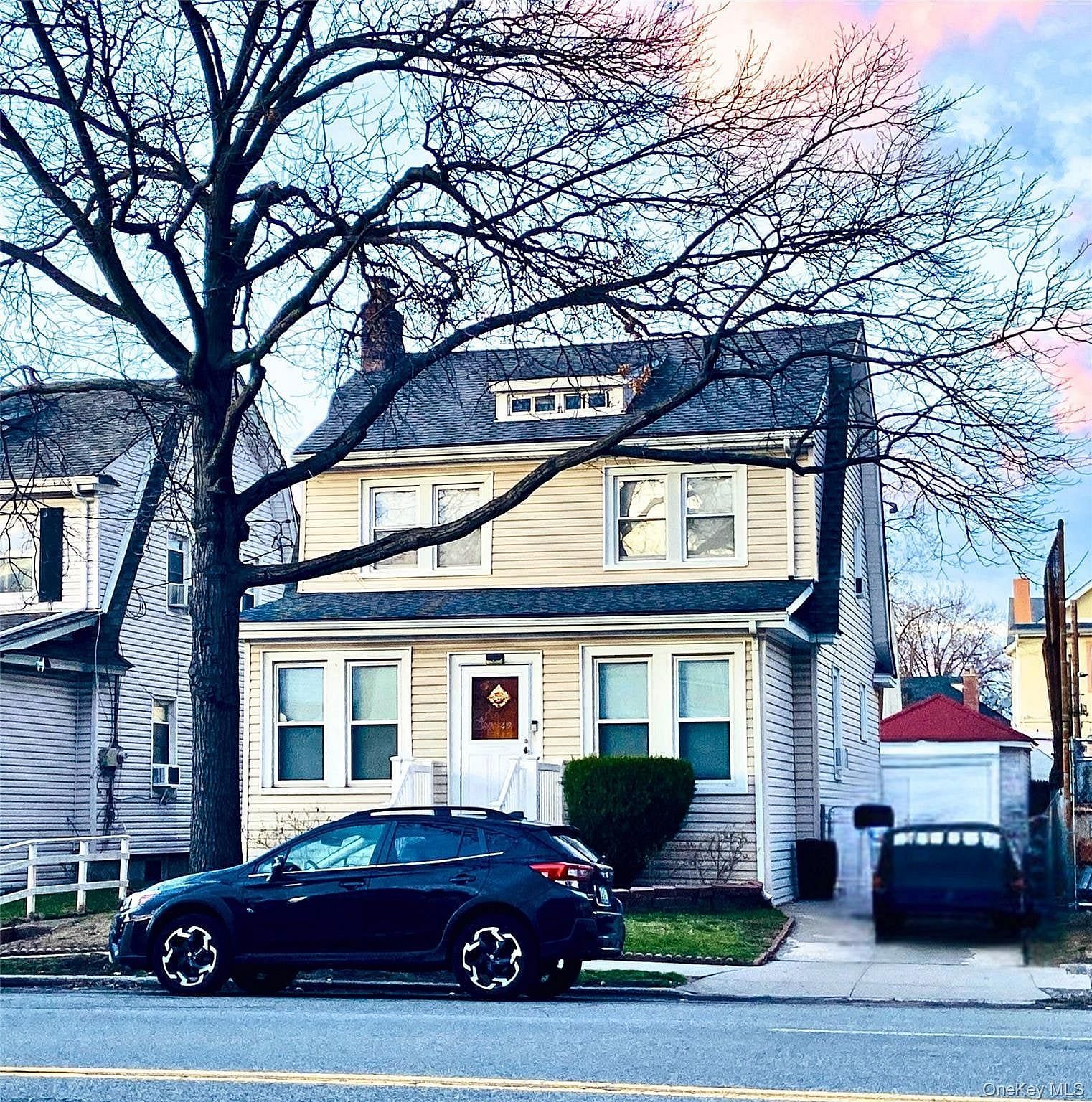 Welcome to this beautiful Colonial home in Queens Village. Step inside and discover spacious rooms with wood floors, high ceilings and plenty of windows, creating a bright and welcoming atmosphere throughout. This home boasts a large indoor porch, fireplace in the living room, formal dining room, complete with glass doors and a kitchen, which offers plenty of cabinets, windows and countertop space. Upstairs, you'll find three generously sized bedrooms and a full bathroom. The third floor offers even more living space with a full walk-up attic offering a fourth bedroom, additional storage, and wood floors. Outside, a spacious private yard offers an ideal setting for outdoor entertaining and relaxation that includes a garage and private driveway with ample space for several cars. The basement provides rooms for storage, washer and dryer and water heater. This property is conveniently located to places of worship, shopping, and major highways.