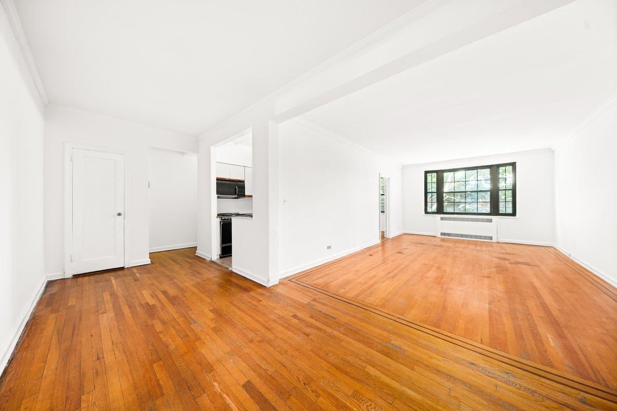 Welcome to Apartment 307 at The Gardens, located on the top floor of this co-operative building in Forest Hills. Apartment 307 features 2 bedrooms (with the conversion of the dining area), 1 bathroom, and a flowing floor plan with entry hallway, foyer, kitchen, formal living room, bathroom (with shower and bathtub) and bedroom wing. Throughout the apartment there is substantial storage (6 closets in total), hardwood floors, and high ceilings. The apartments double exposure brings ample sunlight into the corner of the apartment where the primary bedroom is situated. The apartment has been freshly painted and prepared for sale making it a terrific opportunity to add your finishing touches. Laundry located in apartment. Low maintenance, street parking available, proximity to express bus station and subways (E/F/M/R).