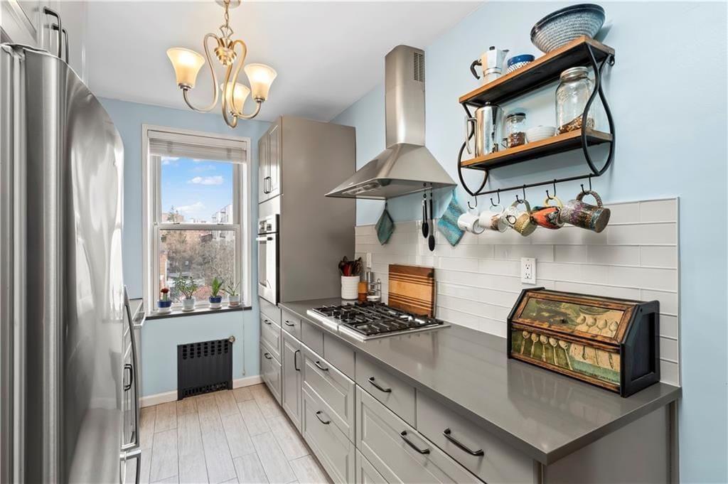 Every room is a gem in this impeccably renovated 2-bedroom corner co-op on Shore Road, with abundant natural light from both eastern and southern exposures. This thoughtfully designed layout features a 28 foot long living and dining area, perfect for entertaining. The beautifully renovated kitchen boasts stylish cabinetry, quartz countertops, and top-of-the-line Bosch and Fisher & Paykel stainless steel appliances, including a wall oven, gas cooktop, and hood vent. A stylish island with recessed lighting and bar seating adds both function and charm. The spa-like bathroom features a window and built-in niche for added convenience. The king-sized primary bedroom provides a serene retreat, while the second bedroom, currently used as an office, offers versatility. Every detail has been meticulously maintained, from elegant crown moldings to stunning hardwood floors and impressive closet space. Building amenities include a live-in super, laundry facilities, storage and bike rooms, and a pet-friendly policy. Parking is available via a waitlist. Enjoy the unbeatable location with express buses to NYC right outside your door. The scenic Shore Road Park offers a dog run, bike paths, free concerts, yoga sessions, and sports fields. Nearby, Bay Ridges vibrant dining scene, weekend farmers' markets, and summer strolls create a lively and welcoming community. Offers should be presented with a financial profile and pre-approval..