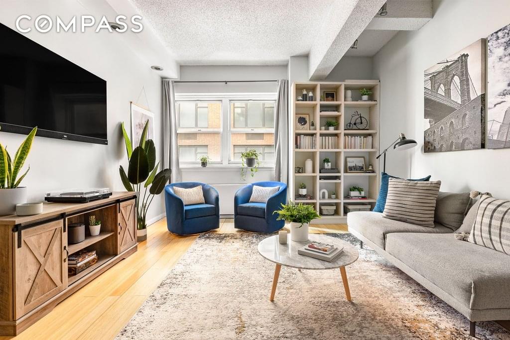 The building, formerly St. Johns Law School, is stunning and boasts many historical and charming details. There are two large elevators, a roof deck with breathtaking views, 24 hour doorman and live-in super. Pet friendly with storage and bike storage. (There is currently a waitlist for storage).