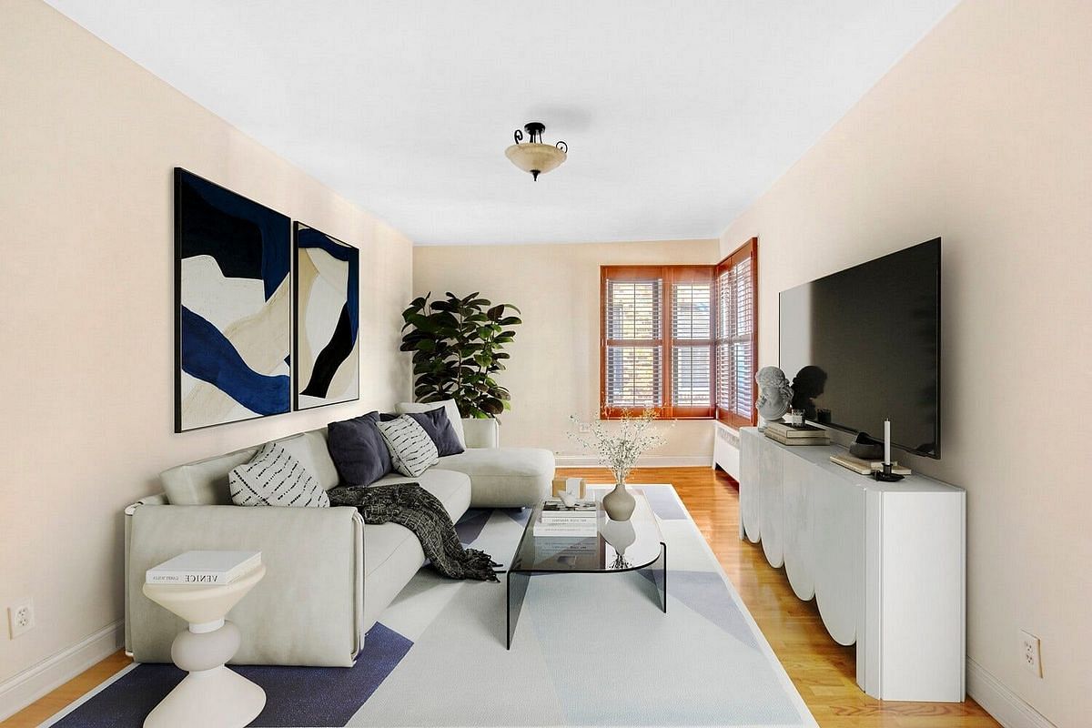 Make this charming 2 Bed/1 Bath prewar apartment your new home in Fort Hamilton! Unit #5L offers approximately 950 ft of thoughtfully designed living space within a classic Art Deco Co-Op. The residence has been modestly updated while preserving its pre-war charm. The spacious primary bedroom captures stunning views of New York Harbor, while the second bedroom provides flexibility for a children's room, home office, or additional living needs. The expansive living room comfortably accommodates both living and dining furniture, creating a warm and versatile layout. The kitchen is equipped with custom wood cabinetry, stone countertops, and stainless steel appliances, including a dishwasher. The windowed bathroom is complete with a tub, tasteful tiling, a modern vanity, and updated fixtures. Generous closet space further enhances the home's functionality. 9701 Shore Road is one of the neighborhood's most sought-after prewar buildings, known for its beautifully maintained Art Deco lobby, attentive live-in superintendent, and thoughtful amenities including an elevator, updated laundry facility, storage, and a bike room (subject to availability). The building is pet-friendly-including dogs-and located directly across from Shore Road Park, offering a newly designed playground, a dog run, tennis courts, athletic fields, and miles of scenic waterfront paths. Monthly maintenance conveniently includes all utilities-electric, water, heat, and real estate taxes-streamlining expenses into a single bill. Air conditioning is just $60 annually per installed unit. An exceptional benefit for qualified buyers, financing with as little as 10% down is possible, a rarity among co-ops.