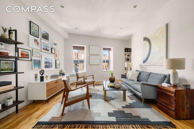 Upon entering, you're greeted by the apartment's lofty 10-foot ceilings and expansive North and West-facing windows, offering stunning views of the roof tops and open sky. The interior is thoughtfully designed, featuring a meticulously renovated kitchen equipped with high-end appliances that cater to your culinary aspirations. The renovated bath exudes contemporary sophistication, while the hardwood floors and ample closet space add to the apartment's timeless appeal.