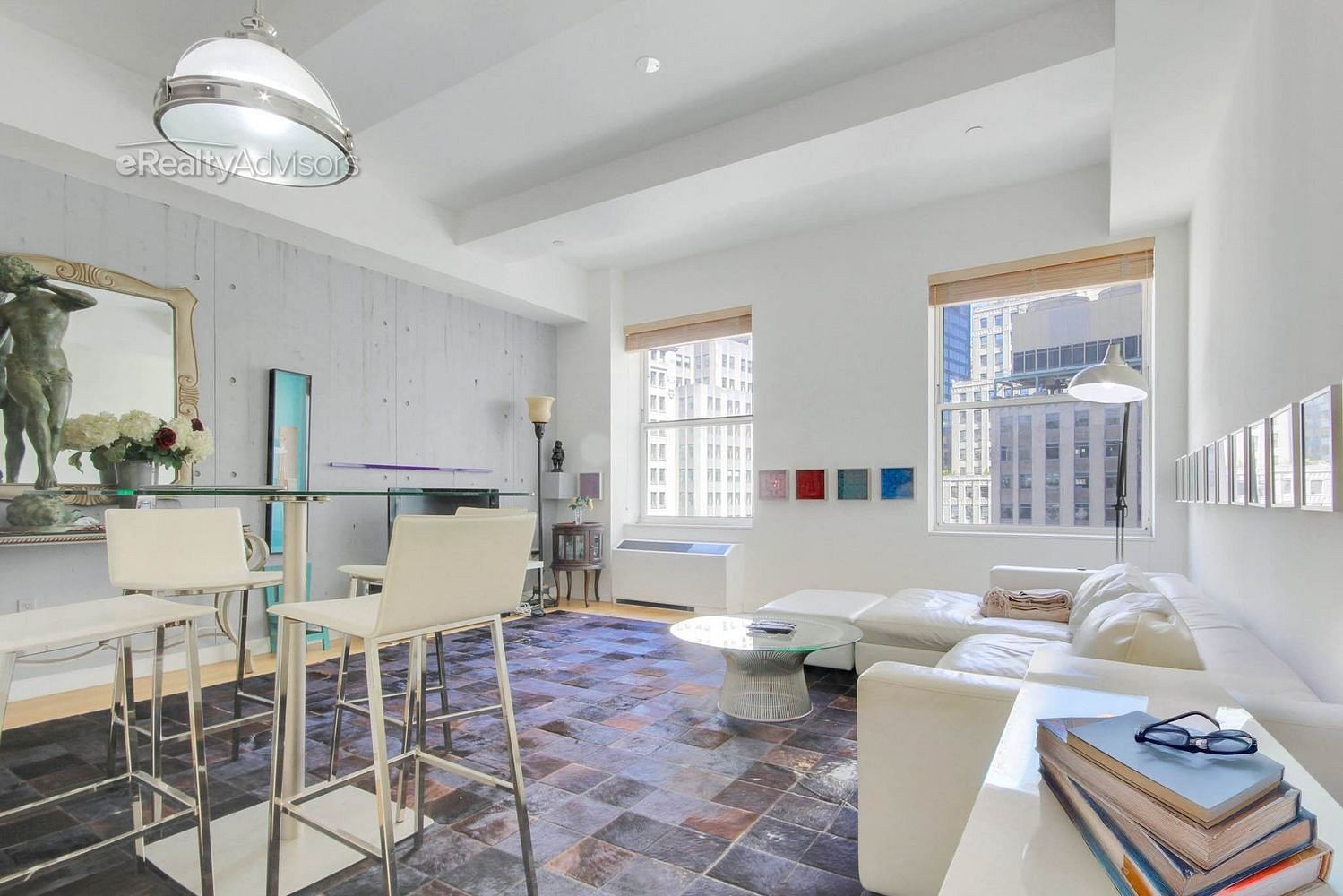 Welcome to Residence 2402 at 15 Broad Street — a spacious and intelligently designed one-bedroom loft offering soaring ceilings, sweeping northeast exposures, and unobstructed views of the iconic Federal Hall National Memorial.