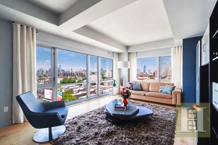 Stunning 2 Bedroom/2 bath aerie in one of Park Slope's prime locations with easy access to everything. Three exposures looking towards Manhattan and across all of Brooklyn in addition to your own private outdoor cabana rooftop space with 360 degree views. Immaculate chefs kitchen features striking silver-ash rift Oak & acid etched mirror custom cabinets with Absolute Black Granite countertops & Bosch stainless appliances. Master bedroom with stunning open views of the Brooklyn skyline from floor to ceiling windows and custom closet finishes with extraordinary attention to detail. Master bath with walnut vanity, Lavastone tiling, Cascade faucets and showerhead, Timbur white marble, Zuma soaking tub, and Ceinza Tile. Zoned energy efficient climate controls. Common charges include your heat, hot/cold water and cooking gas. Bosch washer, dryer in unit.. Also included are a bike room, stunning roof deck, private storage unit, video intercom, two elevators and wheelchair accessible. Just a block from the subway & Park Slope's 5th Avenue strip, & just a short walk to Prospect Park, 7th Avenue, the Greenmarket, the Museum, BAM, & many of Brooklyn's favorite places