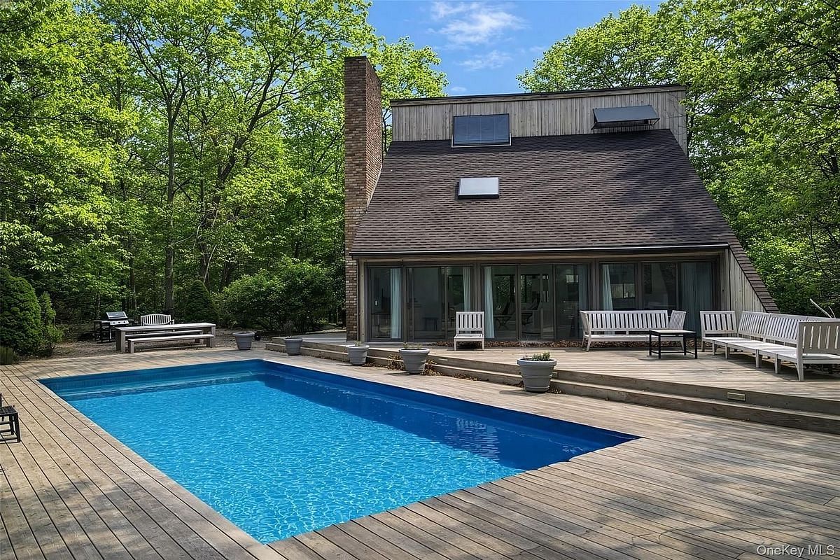 Welcome to 669 Hands Creek Road, a classic saltbox retreat tucked away in the coveted Northwest Woods of East Hampton. Perfectly positioned for both convenience and privacy, this property is just 8 minutes from Sunset Pizza & Spirits at Cedar Point Park, and less than 10 minutes to Northwest Harbor County Park for beach access, boating, and waterfront recreation. The restaurants, boutiques, and village charm of Main Street in East Hampton are just 5 miles away. Set on a shy acre of mature, beautifully landscaped grounds, this approximately 2,000 square foot home offers 3 bedrooms and 2 full baths in a timeless saltbox design-an architectural style deeply rooted in East Hampton's heritage. The home's distinctive roofline and thoughtful layout invite natural light throughout the day, creating bright, airy living spaces that feel both welcoming and refined. Designed for seamless indoor-outdoor living, the property features a generously sized deck that wraps around a heated vinyl pool and pool house-an ideal setting for summer gatherings or quiet afternoons in complete privacy. The mature landscaping provides a serene backdrop and a sense of seclusion that makes Northwest Woods such a beloved enclave. Close enough to enjoy every convenience, yet far enough to feel like your own private escape, this property offers the best of Hamptons living-classic design, natural beauty, and effortless access to water, village, and dining.
