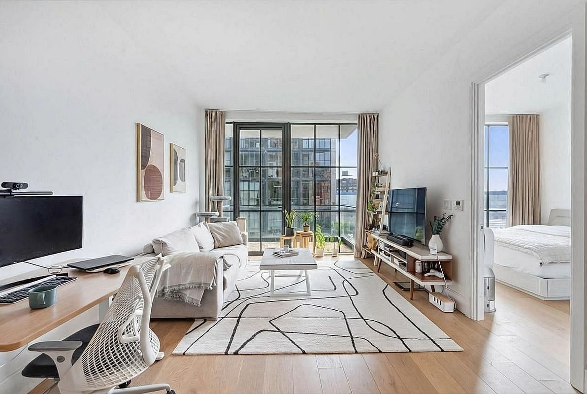 The interior design of the residence is seamlessly modern, with the clean lines of the custom oak flooring and a neutral palette that nevertheless contains a variety of sophisticated details. GALERIE offers distinct living experiences that feature three unique architectural glazing styles- punched windows, window walls, and curtain walls. The workmanship is superior, with materials and finishes that are modern and sublime. Airy and open, the interiors anticipate owners who appreciate a space that can be easily decorated to reflect their personal point-of-view. Seamlessly integrated with the living space, high design and precision woodwork express the quality of the kitchens. Sophisticated matte white oak millwork is complemented with bright white lacquer cabinets. A suite of stainless steel Bosch appliances and LED lighting completes the package. The master bath is an artistic sanctuary with custom lacquer cabinetry and distinctive Zebra-Mink marble wall tiles and accents. All bathrooms include polished Waterworks fixtures.