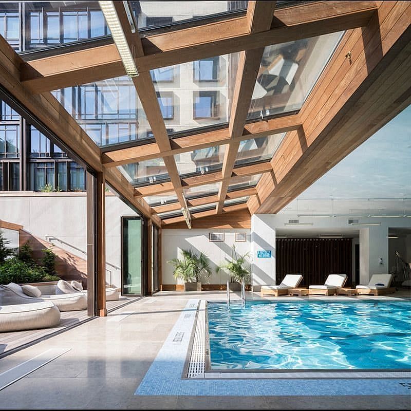 Oosten offers a full-service lifestyle with a 24-hour doorman, fitness center, indoor pool, landscaped courtyard, roof deck with BBQs and cabanas, lounge, children’s playroom, and bike storage.