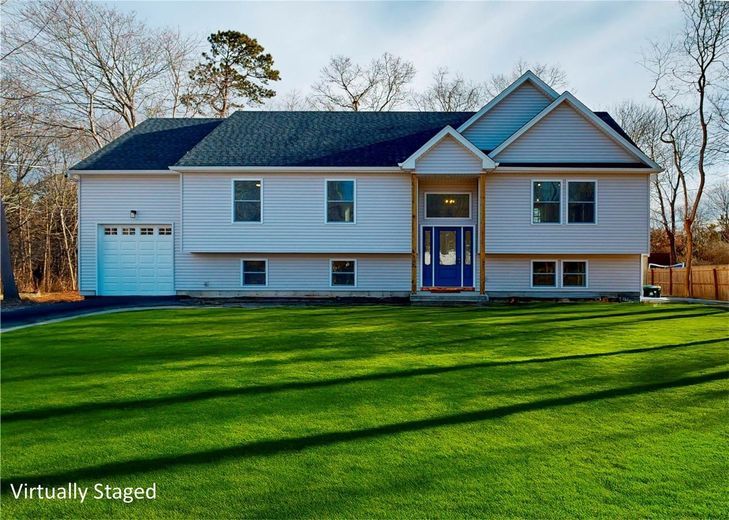 New Modern Raised-Ranch with 3 bedrooms and 2 full bathrooms. Full basement with outside entrance and egress windows. Features- hard wood floors, vaulted ceilings living room with fireplace. White shaker kitchen cabinets with Quartz counter tops, center island and stainless steel appliances. Sliding glass door from dining room leading to rear deck.