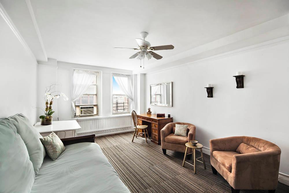 Bright and commodious studio in the incomparable Masters Building, a Prewar Art Deco gem on Riverside Drive designed by Harvey Wiley Corbett. This home offers views to the Northand a small sliver of the Hudson River to the West. Additionally the home offers an ample sized bathroom and two closets, one of which is an enormous walk-in.
