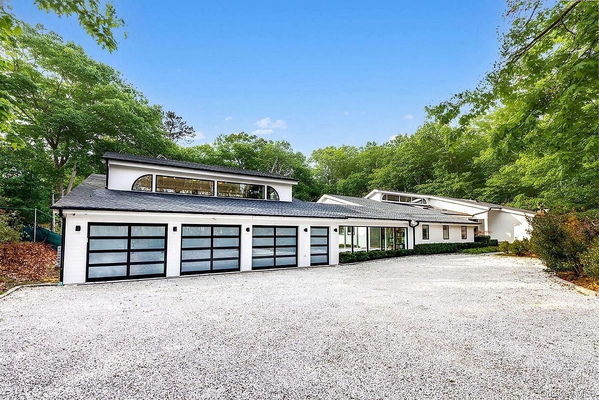 This contemporary Hamptons escape on 2 acres in the heart of East Hampton captures the essence of chic luxury living. Peace and privacy surround the single-level contemporary home with 6,388 +/- SF, 6 bedrooms, 7 full baths, 3 half baths, 2 fireplaces, attached 4-car garage, heated infinity gunite pool and spa. Interiors are bright and welcoming, featuring white oak hardwood floors and floor-to-ceiling windows that frame a central courtyard, anchored by a tranquil water feature fountain. Multiple sliding glass doors open to a wraparound patio running the length of the home, greatly expanding the living space during the Hamptons summer. Ready for year-round living with 3 full offices in the home, including the 400+/- SF main office and attached 400+/- SF deck. Skylights illuminate the eat-in kitchen and breakfast nook, while the dining room is bathed in natural light and overlooks the grounds. The main living room is open and exceptionally comfortable, with a wall of floor-to-ceiling glass sliders and a wood-burning fireplace at its heart. An additional open-concept gathering space opens to the pool and 1,000+/- SF porcelain tile patio. Each of the bedrooms is bright and accommodating for loved ones and guests, including a large ensuite primary with an exceptionally luxe marble bath. A separate pool house with a covered patio sets the stage for effortless al fresco dining. On the finished lower level, two ensuite bedrooms are joined by a large living room with a wall of sliding glass doors and walkout access, plus an eat-in bar and wet bar that make entertaining easy. A spacious home gym completes this level, creating a resort-like experience at home. This central East Hampton location is close to the best of life in the Hamptons - beautiful ocean and bay beaches, farmstands, marinas, and elevated life in the nearby Villages of Sag Harbor and East Hampton.