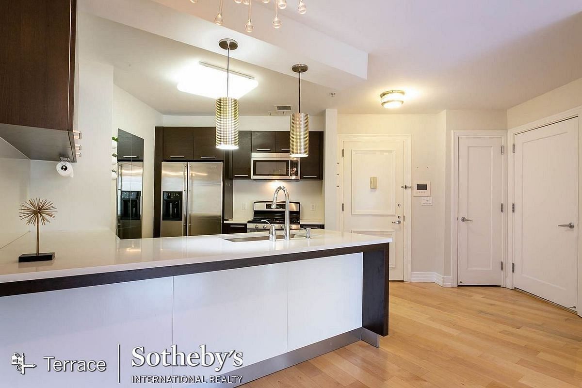 Welcome to Novo 64, the premier luxury residence in Forest Hills! This spacious and modern 1-bedroom apartment offers a bright living space with high-end finishes, including stainless steel appliances, stone countertops, marble-tiled baths, and hardwood floors. Elegant coffered ceilings add a sophisticated touch.