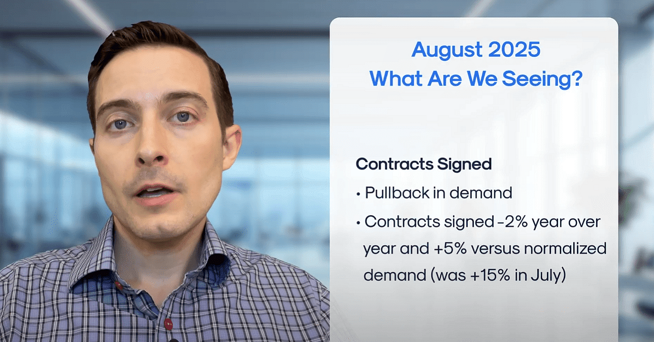 Hey everyone, it's James at Yoreevo, New York's #1 commission rebate brokerage with our August 2025 Manhattan Market Update. Last month, we saw a big uptick in demand, an uptick that we weren't really seeing and couldn't really explain. And with the benefit of August data, it does look like that was a blip because we saw a pretty big pullback in demand. The number of contracts signed was down 2% year over year. It was still up 5% versus normalized levels of demand, but that's compared to 15% in July. So we're not quite back to the levels we are seeing in May and June amidst all the tariff uncertainty, but we definitely saw a pullback in demand. On the inventory side, same story there. If you remember six-ish months ago, we were seeing some increases and we thought maybe the story had changed there and supply was no longer going to cooperate. That turned out not to be the case. We have seen consistent declines for a few months now and that's on a year over year basis when we look at it versus normalized levels of inventory, you can see we're back towards the lows. So inventory remains very tight, it's really supporting prices as buyers just don't have much to choose from. August is a very slow month of the year, so these data points aren't that important. What you might have seen in August is the Fed chairman in - I think it was - two weeks ago, indicated that the Fed is more open to cutting rates in September and that got everyone very excited thinking that mortgage rates were going to come down quite a bit. If you watch this every month, you know that expectations, changes in expectations are what drive mortgage rates today and given that was unexpected, meaning people were not expecting the Fed or not as confident that there was going to cut in September, that did bring interest rates lower, all interest rates, but specifically mortgage rates, but you can see that it was not much of a change. It wasn't really anything to get too excited about. Mortgage rates came down about 0.2% versus last month. So we'll take it, but we're still solidly in the six and a half, six, seven, five range. If you were thinking this is going to push rates down to the fives, it's not going to. So mortgage rates a little bit better, but not nearly to the degree that the financial media might have led you to believe. So we're heading into the fall. This is the spring selling season. Then this is when activity really ramps up. September doesn't see that much in terms of contract activity because September contracts are reflective of August buyers, but in October and November, we're going to see a lot more contracts getting signed. So if you're in the market, you want to save up to 2% on any property in New York City, of course you can reach out to us at info@yoreevo.com. We'd be happy to help and slice and dice this data specifically for your search. So thank you for watching and we will see you next month. Bye.